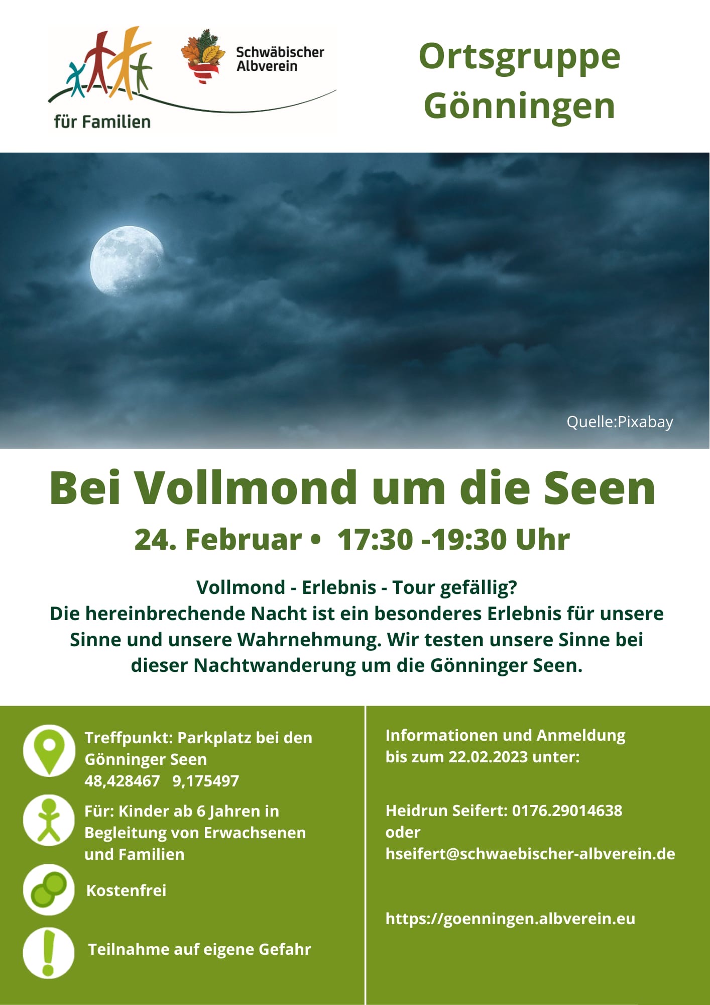 Familienaktion (Bei Vollmond um die Seen) Sa., 24.02.2024, Uhrzeit: 17:30 - 19:30 iCalendar Mit dem Laden der Karte akzeptieren Sie die Datenschutzerklärung von Google.Mehr erfahren Karte laden Google Maps immer entsperren zur Übersicht
